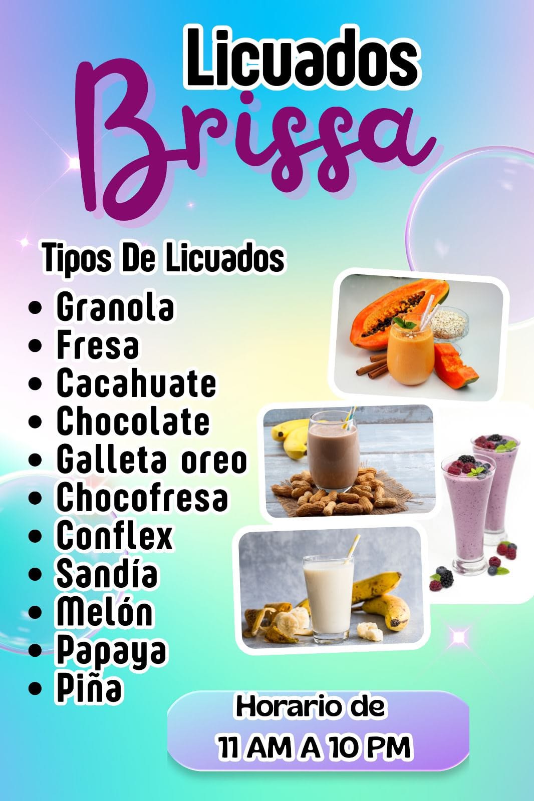 Bienvenidos a Licuados Brissa, donde nos especializamos en la preparación de deliciosos y nutritivos licuados para satisfacer tus antojos y promover un estilo de vida saludable en La Ceiba y sus alrededores. ¡Haz que tu día sea más refrescante y sabroso con nosotros!